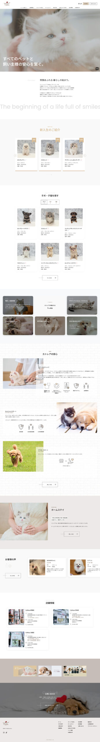 東京都内でペットショップを3店舗展開されているCattleya(カトレア)様のホームページを制作させていただきました。